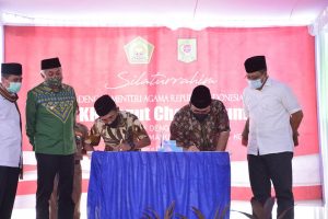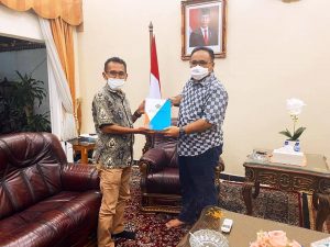 Walikota Bima, H Muhammad Lutfi,SE saat menyerahkan proposal pembangunan kampus IAIN kepada Menteri Agama RI, Yaqut Cholil Qaunas di Kediaman Menteri Agama, Jakarta Jumat.